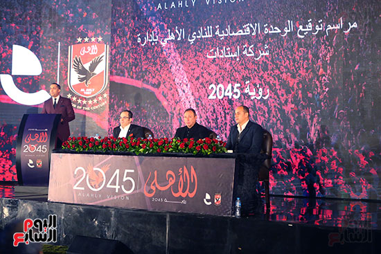 وأردف قائلا: "نفخر بالتعاون مع النادي الأهلي العظيم، ونشكر مجلس إدارة القلعة الحمراء، كما نشيد بالدور الرائع الذي يقدمه الكابتن محمود الخطيب رئيس مجلس إدارة النادي الأهلي والذي رغم مرضه وارتباطه بالعلاج إلا أنه لا يكل ولا يمل من الحديث والاجتماعات حول إدخال موارد مالية ضخمة للنادي الأهلي، وإقامة العديد من المشروعات التجارية والاستثمارية التي ستضيف الكثير للنادي، وإجراء اتفاقية الرؤية الاقتصادية للأهلي حتى عام ٢٠٤٥".